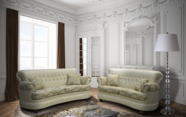 Duplice veste nei rivestimenti per questo divano dalla forme originali e tradizionali, con l’accento di forme piacevolmente curve.